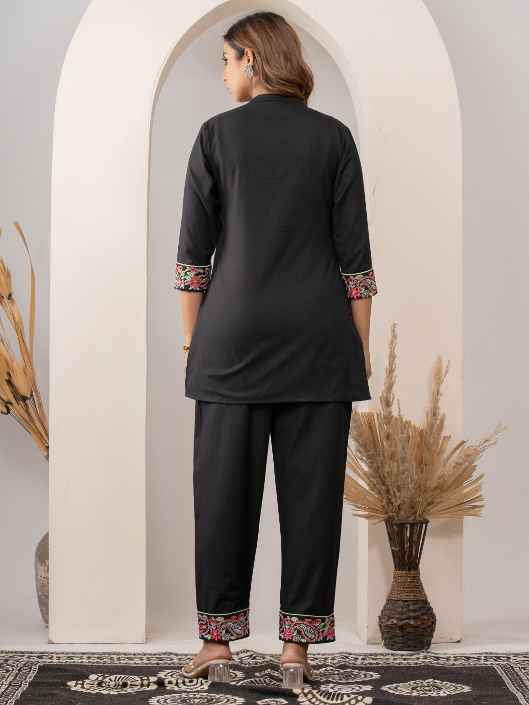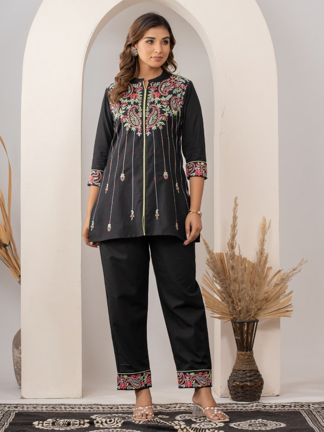 Prepare for compliments! This gorgeous Embroidered Cotton Flex Co-ord Set in timeless black is the ultimate blend of sophistication and sassy fun. It's an instant head-turner!