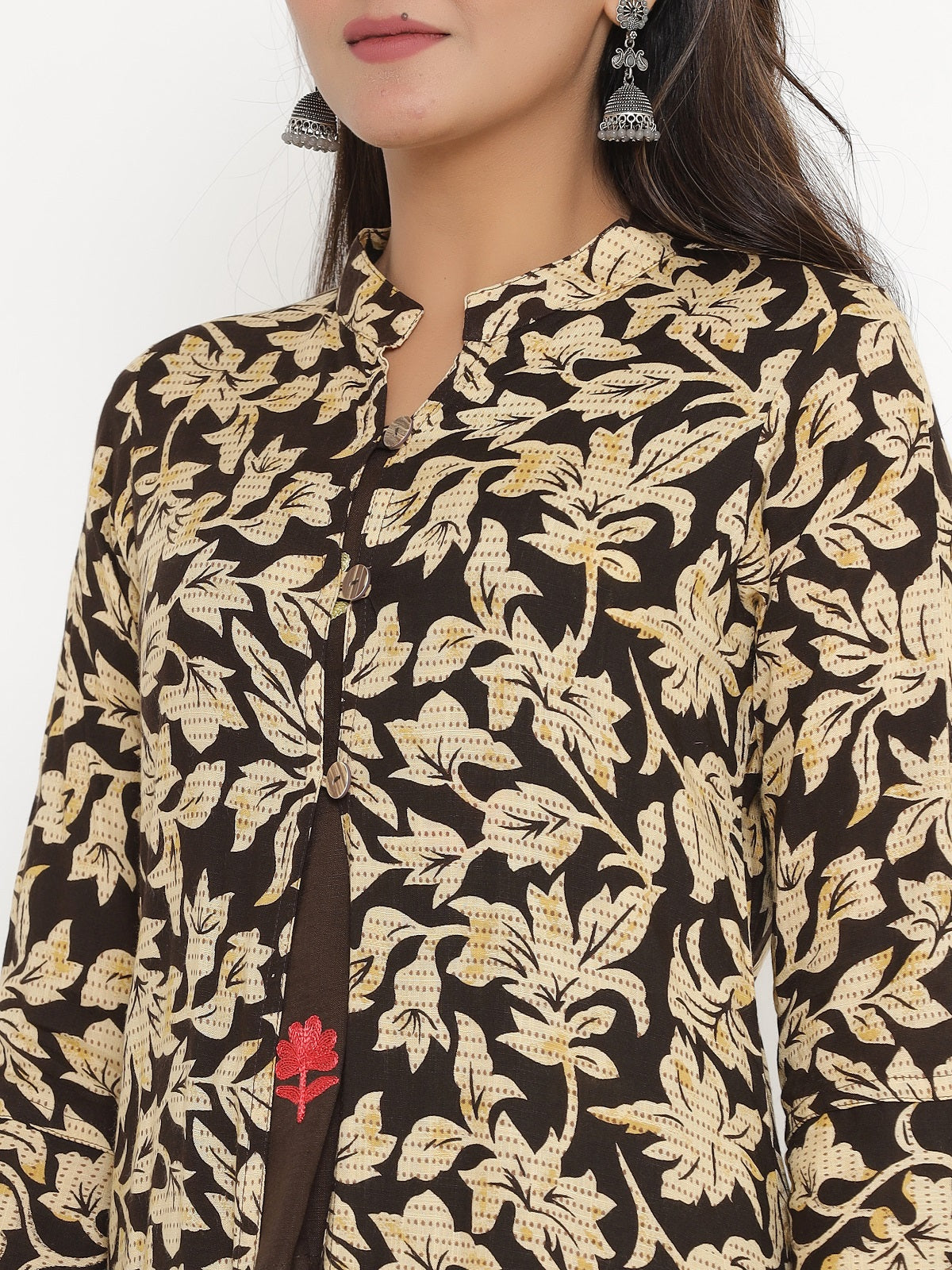 Floral Print Shrug, Top and Pant Set - Brown