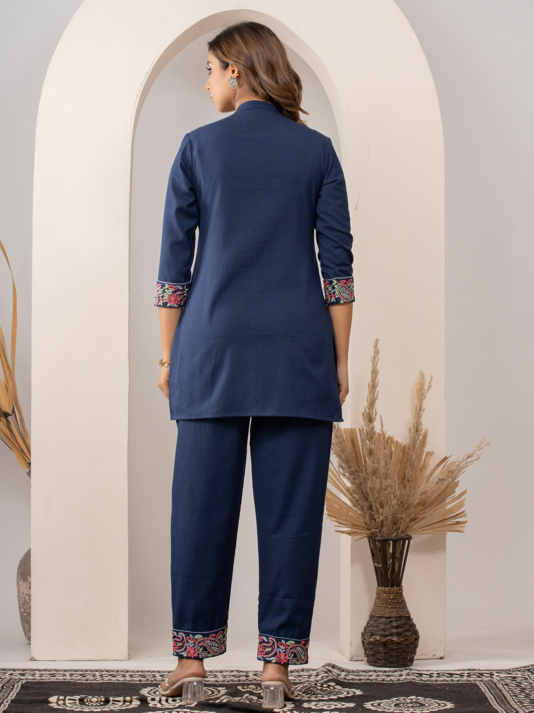 Dive deep into style with this enchanting Embroidered Cotton Flex Co-ord Set in a gorgeous, rich navy! This isn't just an outfit; it's a mood!